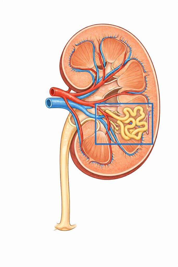 腎不全になると尿細管が壊れ、水分を回収できなくなります。